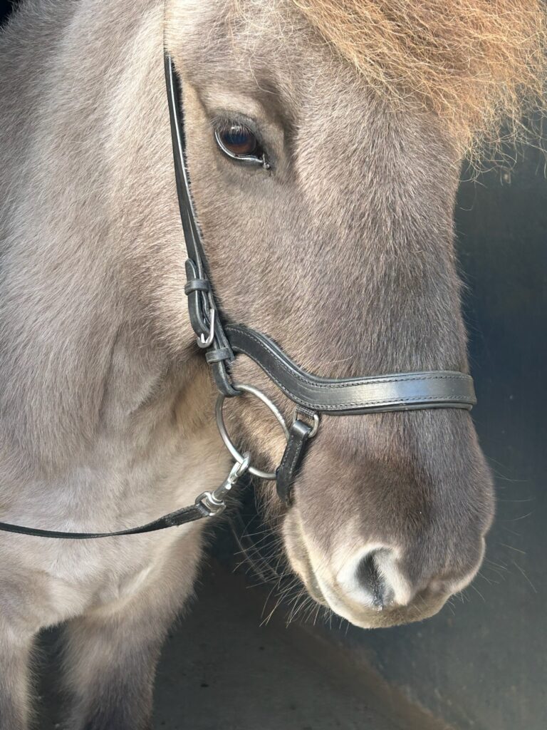 Draupnir anatomisk nesereim leveres med bred polstret rem av mykt kalveskinn over nesen og to reimer til feste på underkjeven.